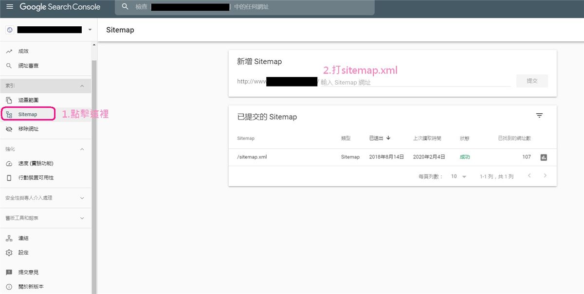將sitemap.xml上傳到網站後(可以請網站主協助上傳),到google search console的圖示這裡進行提交。